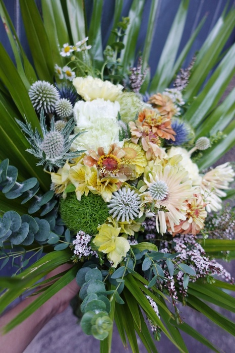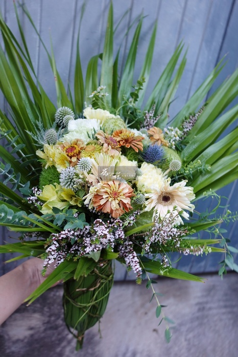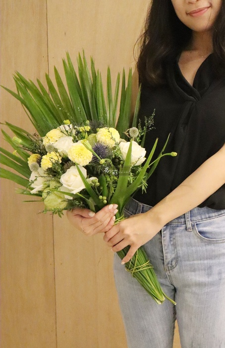 捨去過多的包裝紙,我們運用葉子裝點成花束的外衣,充滿著春天的時尚氣息
