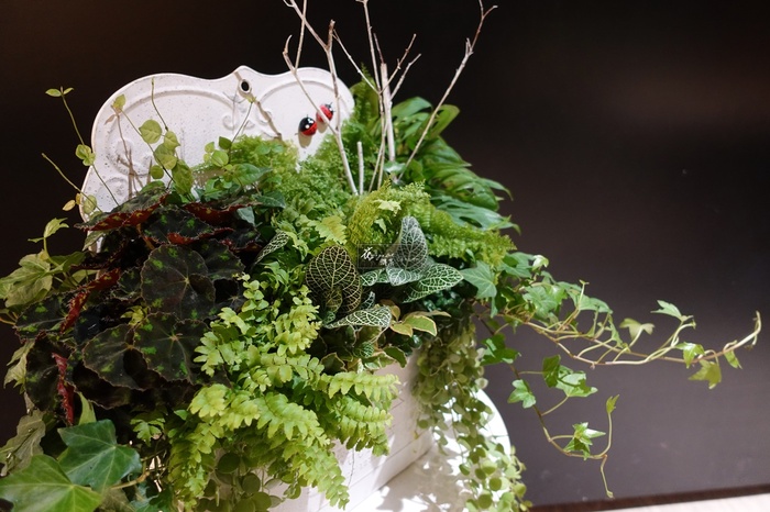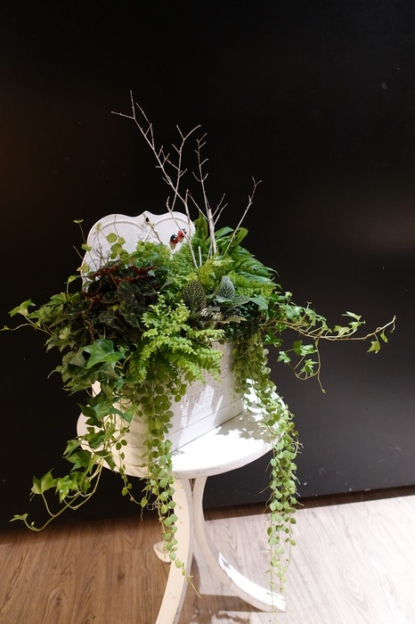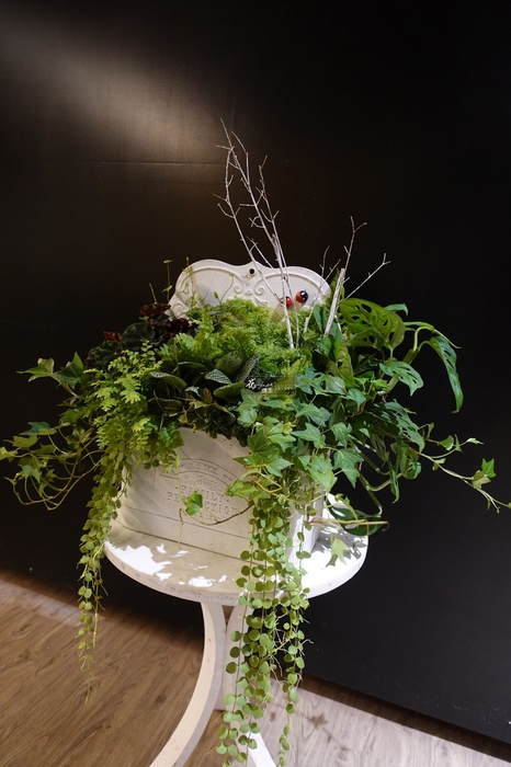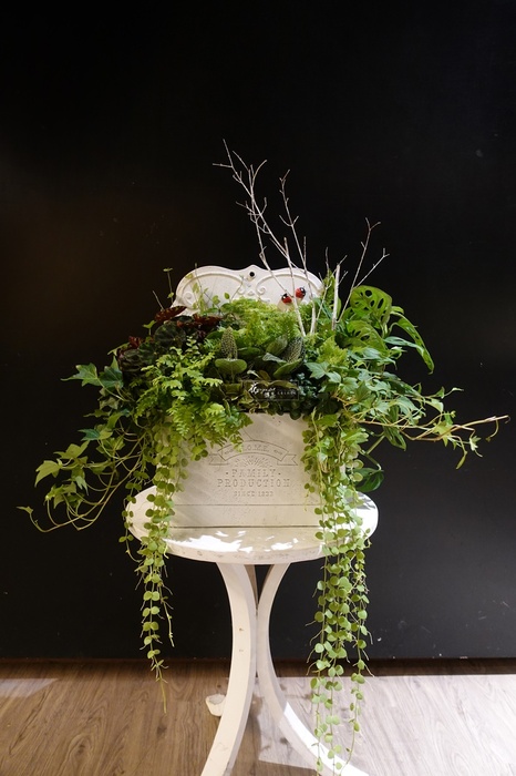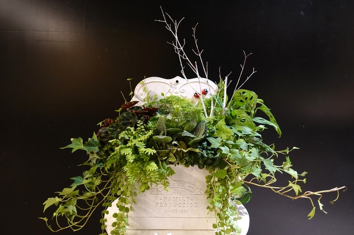 【主素材】觀葉植物、馬口鐵壁掛花器
